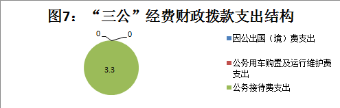 2019年“三公”经费财政拨款支出决算中,因公出国(境)费支出决算0万元,占0%;公务用车购置及运行维护费支出决算0万元,0%;公务接待费支出决算3.30万元,占100%。具体情况如下: