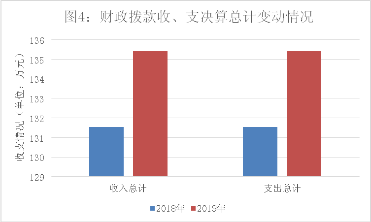 2019年财政拨款收、支总计135.41万元。与2018年相比,财政拨款收、支总计各增加3.87万元,增长2.94%。主要变动原因是本年度业务量增大。