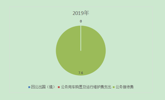 2019年“三公”经费财政拨款支出决算中,因公出国(境)费支出决算0万元,占0%;公务用车购置及运行维护费支出决算0万元,占0%;公务接待费支出决算7.6万元,占100%。具体情况如下: