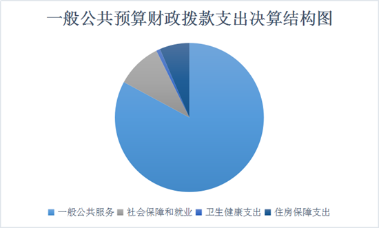 2019年一般公共预算财政拨款支出2031.52万元,主要用于以下方面:一般公共服务(类)支出1683.69万元,占82.87%;社会保障和就业(类)支出199.21万元,占9.81%;卫生健康支出17.01万元,占0.84%;住房保障支出131.61万元,占6.48%。