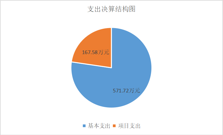 2019年本年支出合计739.30万元,其中:基本支出571.72万元,占77.33%;项目支出167.58万元,占22.67%;上缴上级支出0万元,占0%;经营支出0万元,占0%;对附属单位补助支出0万元,占0%。