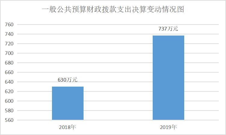 2019年一般公共预算财政拨款支出736.86万元,占本年支出合计的99.67%。与2018年相比,一般公共预算财政拨款增加106.93万元,增长16.97%。主要变动原因是2018年农村公共运维项目资金列支和人员的增加。