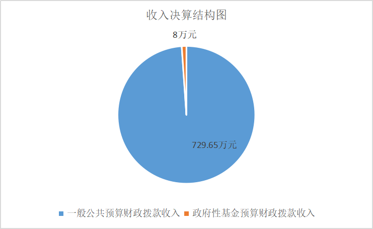 2019年本年收入合计737.65万元,其中:一般公共预算财政拨款收入729.65万元,占98.92%;政府性基金预算财政拨款收入8万元,占1.08%;上级补助收入0万元,占0%;事业收入0万元,占0%;经营收入0万元,占0%;附属单位上缴收入0万元,占0%;其他收入0万元,占0%。