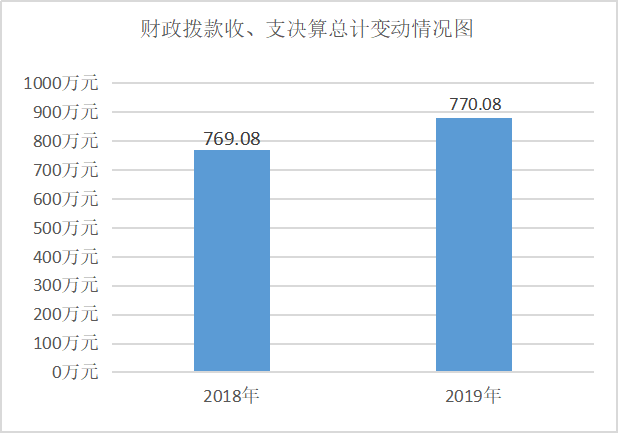 2019年度收、支总计879.03万元。与2018年相比,收、支总计各增加109.95万元,增长14.30%。主要变动原因是2018年农村公共运维项目资金列支和人员的增加。