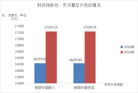 2019年度收入总计17234.23万元,与2018年相比,收入总计增加1000.4万元,增加6.16%。主要变动原因是2019年财政应返还额度较2018年财政应返还额度增加。