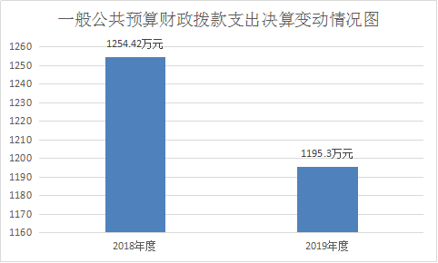 2019年一般公共预算财政拨款支出1195.3万元,占本年支出合计的100%。与2018年相比,一般公共预算财政拨款减少59.12万元,减少4.71%。主要变动原因是压缩一般性支出。