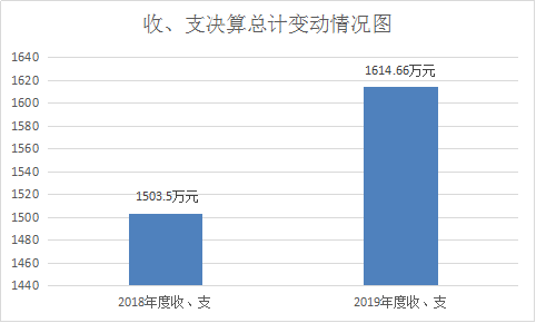 2019年度收、支总计1614.66万元。与2018年相比,收、支总计各增加万元,增加15.6%。主要变动原因是人员增加。