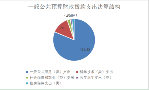 2019年一般公共预算财政拨款支出598.75万元,主要用于以下方面:一般公共服务(类)支出486.25万元,占81.20%;科学技术(类)支出80万元,占13.36%;社会保障和就业(类)支出14.30万元,占2.4%;医疗卫生支出(类)7.49万元,占1.25%;住房保障支出(类)10.71万元,占1.79%。(罗列全部功能分类科目,至类级。)(图6:一般公共预算财政拨款支出决算结构)(饼状图)