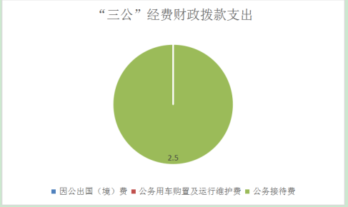 2019年“三公”经费财政拨款支出决算中,因公出国(境)费支出决算0万元,占0%;公务用车购置及运行维护费支出决算0万元,占0%;公务接待费支出决算2.50万元,占100%。具体情况如下: