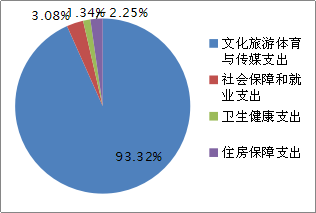 2019年一般公共预算财政拨款支出526.61万元,主要用于以下方面:文化旅游体育与传媒(类)支出491.45万元,占93.32%;社会保障和就业(类)支出16.21万元,占3.08%;卫生健康支出7.08万元,占1.34%;住房保障支出11.87万元,占2.25%。