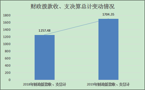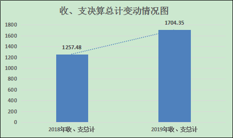 2019年度收、支总计1704.35万元。与2018年相比,收、支总计各增加446.87万元,增长35.54%。主要变动原因是大型项目收支的增加。