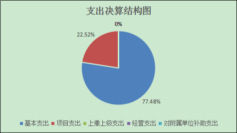 2019年本年支出合计1128.38万元,其中:基本支出874.29万元,占77.48%;项目支出254.09万元,占22.52%;上缴上级支出0万元,占0%;经营支出0万元,占0%;对附属单位补助支出0万元,占0%。