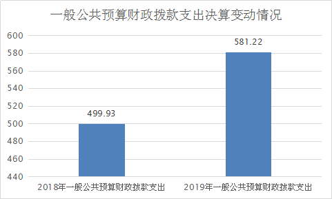 2019年一般公共预算支出决算数为581.22万元,完成预算85%。其中: