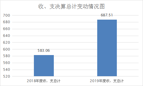 2019年度收、支总计687.51万元。与2018年相比,财政拨款收、支总计增加104.45万元,增长18%。主要变动原因是中央自然灾害生活补助及垃圾存量治理项目资金纳入本年度预算。