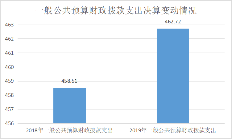 2019年一般公共预算财政拨款支出462.72万元,占本年支出合计的100%。与2018年相比,一般公共预算财政拨款增加4.21万元,增长0.92%。主要变动原因是工资调标以及垃圾存量治理项目资金纳入本年度预算。