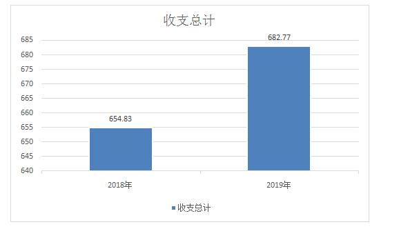 2019年度收、支总计682.77万元。与2018年相比,收、支总计各增加27.94万元,增长4.27%。主要变动原因是脱贫攻坚工作经费增加、人员工业务经费增加。