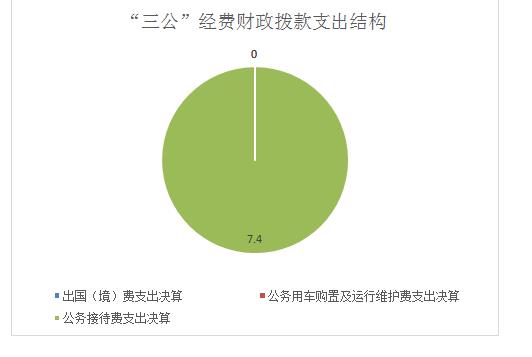 2019年“三公”经费财政拨款支出决算中,因公出国(境)费支出决算0万元,占0%;公务用车购置及运行维护费支出决算0万元,占0%;公务接待费支出决算7.4万元,占100%。具体情况如下: