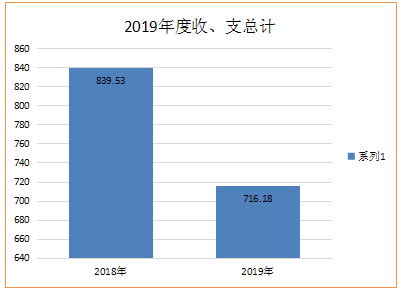 2019年度收、支总计716.18万元,与2018年相比,收、支总计减少123.35万元,减少14.69%,主要变动原因是项目项目减少,人员减少。