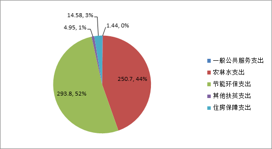 2019年一般公共预算财政拨款支出560.53万元,主要用于以下方面:201一般公共服务支出1.44万元,占0%;213农林水支出250.7万元,占44%;211节能环保支出293.8万元,占52%;21305扶贫支出4.95万元,占1%; 221住房保障支出14.58万元,占3%。