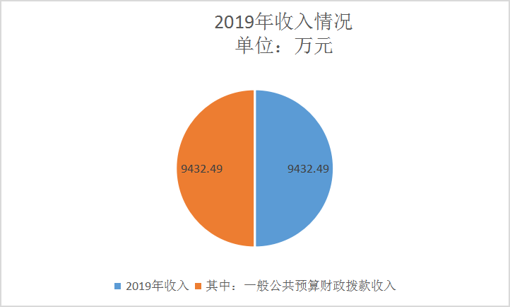 2019年本年收入合计9432.49万元,其中:一般公共预算财政拨款收入9432.49万元,占100%;政府性基金预算财政拨款收入0万元;上级补助收入0万元;事业收入0万元,;经营收入0万元;附属单位上缴收入0万元;其他收入0万元.