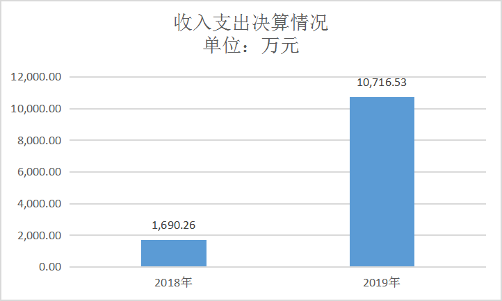 2019年度收、支总计10716.53万元。与2018年相比,收、支总计各增加9026.27万元,增长534.02%。主要变动原因是人员增加,专项资金增加。