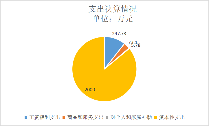 2019年本年支出2326.61万元,按支出性质,基本支出290.39万元,项目支出2036.22万元;按支出经济分类,工资福利支出247.73万元,商品和服务支出73.1万元,对个人和家庭的补助5.78元,资本性支出2000万元。