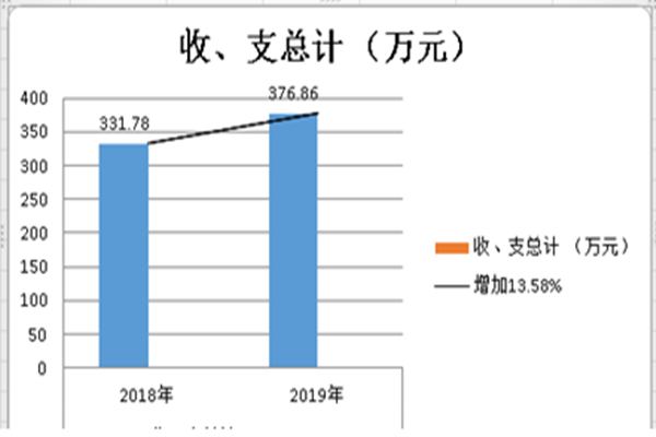 2019年度收、支总计376.86万元。与2018年相比,收、支总计各增加45.08万元,增加13.58%。主要变动原因是:一是厉行节约压减公用经费,二是项目支出个别部分未实现支付。