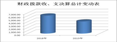 2019年度财政资金总收入4,112.00万元。其中本年财政资金收入3,171.58万元,上年结转940.42万元。财政资金支出3,756.89万元,完成预算的91.36%。其中:基本支出2,056.82万元,占预算支出的54.75%,项目支出1,700.06万元,占预算支出的45.25%。年末结转355.11万元。