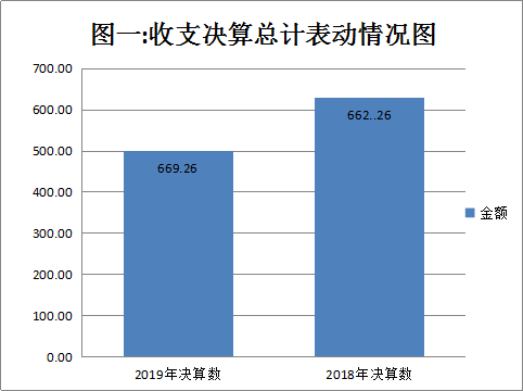 2019年度收入、支出总计669.26万元。与2018年相比,收、支总计增加7万元,增长1%。主要变动原因是人员增加。