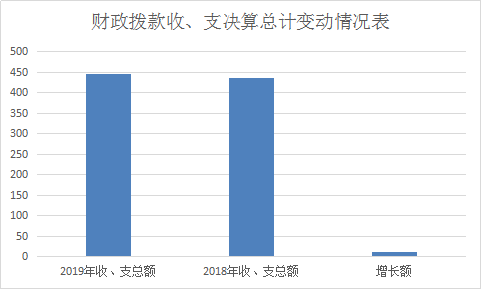 2019年度财政拨款收、支总计446.15万元。与2018年相比,收、支总计各增加10.39万元,增加2.3%。主要变动原因人员增加,专项资金增加。