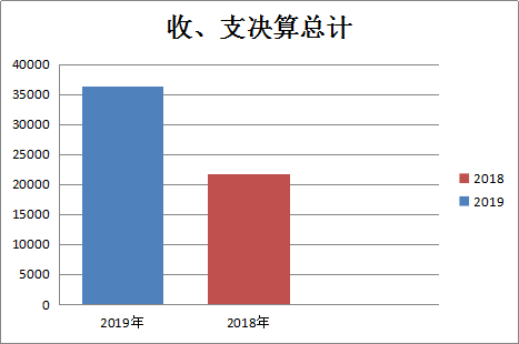 2019年度收、支总计36341.75万元。与2018年相比,收、支总计各增加14609.61万元,增长67.23%。主要变动原因是机构改革单位合并,基本和项目支出收、支增加。
