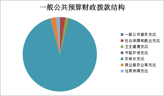2019年一般公共预算财政拨款支出14506.15万元,主要用于以下方面:一般公共服务(类)支出3.6万元,占0.03%;社会保障和就业(类)支出355.11万元,占2.45%;卫生健康支出211.02万元,占1.45%;节能环保支出(类)43.35万元,占0.3%;农林水支出(类)支出13291.16万元,占91.62%;商业服务业等支出(类)支出359.94万元,占2.48%;住房保障支出241.98万元,占1.67%。