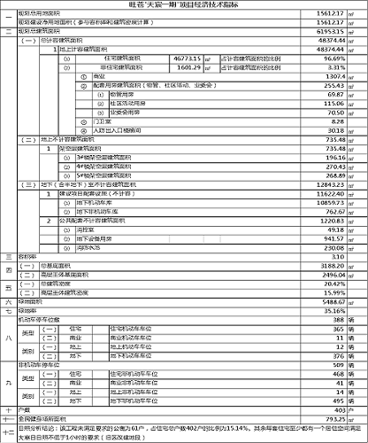 主要经济技术指标为:本项目主要由T4高层两幢、T5高层两幢及商业建筑一幢组成。用地面积15612.17㎡,总建筑面积61953.15㎡,其中地上计容建筑面积48374.44㎡(住宅建筑面积46773.15㎡、商业建筑面积1307.4㎡、配套用房建筑面积255.43㎡、门卫室8.28㎡、人防出入口楼梯间30.18㎡),地上不计容建筑面积735.48㎡,地下室建筑面积12843.23㎡;容积率3.1,总基底面积3188.20㎡、高层主体基底面积2496.04㎡,总建筑密度20.42%、高层主体建筑密度15.99%,绿地面积5488.67㎡,绿地率35.16%,机动车停车位388辆,非机动车停车位509辆。该工程未满足日照要求的户数(公寓)为61户,占住宅总户数403户的比例为15.14%。(附图见后)