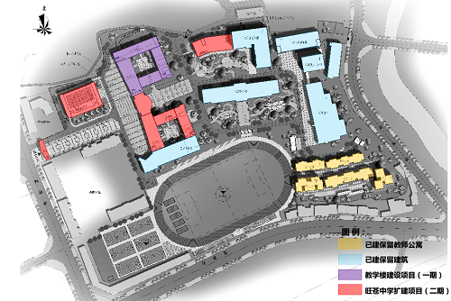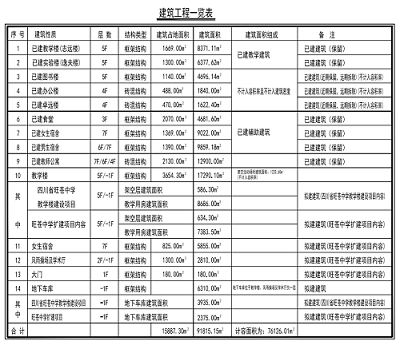 1.主要经济技术指标为:新建教学楼占地面积3654.30㎡,总建筑面积17290.10㎡(其中旺中校教学楼建设项目架空层建筑面积586.30㎡、教学用房建筑面积8686㎡;旺中校扩建项目架空层建筑面积634.30㎡、教学用房建筑面积7383.5㎡)。新建女生宿舍建筑面积5855㎡,新建风雨操场及学术厅建筑面积2810㎡,新建大门建筑面积180㎡,新建地下车库建筑面积6310㎡(其中旺中校教学楼建设项目车库建筑面积3935㎡、旺中校扩建项目车库建筑面积2375㎡)。现有图书楼、办公楼、卓远楼近期保留,远期拆除。