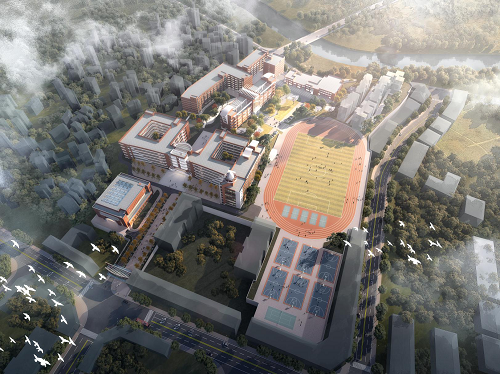 根据学校发展需要,学校建设共分两期建设,即四川省旺苍中学教学楼建设项目(一期)、旺苍中学扩建项目(二期)。四川省旺苍中学教学楼建设项目(一期)建设时需要拆除风雨操场及东北侧部分代征用地,校园内部交通组织不发生改变。旺苍中学扩建项目(二期)包括二期教学楼、女生宿舍、大门、风雨操场及学术厅。建设二期教学楼时需拆除图书楼,建设女生宿舍时需将东北侧代征用地全部纳入建设范围,大门、风雨操场及学术厅均在自有范围内建设。待二期工程全部建设完毕后再拆除现有办公楼和卓远楼,校园内部交通组织完成,最终实现人车分流。