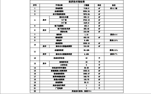 拟建方案经济技术指标为:用地面积7138.6㎡(约10.7亩),总建筑面积8354.34㎡,其中地上建筑面积7870.04㎡(综合办公楼939.12㎡、1#厂房3743.12㎡、2#厂房3187.8㎡),地下室面积484.3㎡(地下室设备用房265.42㎡、消防水池218.88㎡);容积率1.10,绿地面积605.03㎡,绿地率8.48%,基底面积2528.15㎡,建筑密度35.42%,机动车停车位19个(标准停车位16个、大车停车位3个)。