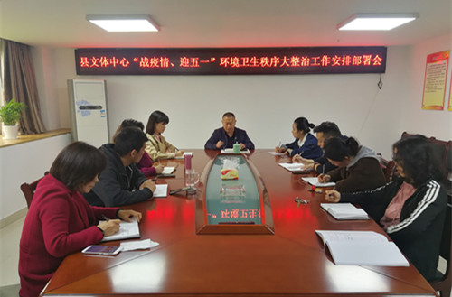 4月17日下午,县文体中心召开了“战疫情、迎五一”城乡环境卫生秩序大整治工作安排部署会议。