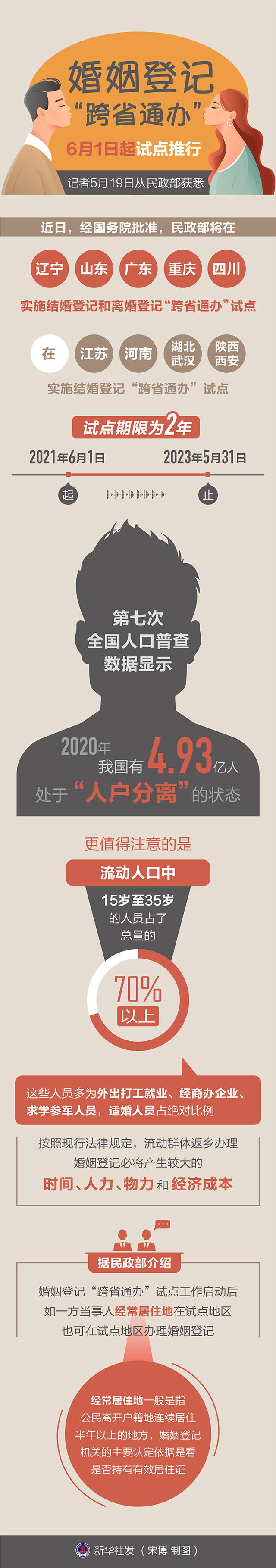 图表:婚姻登记“跨省通办”6月1日起试点推行