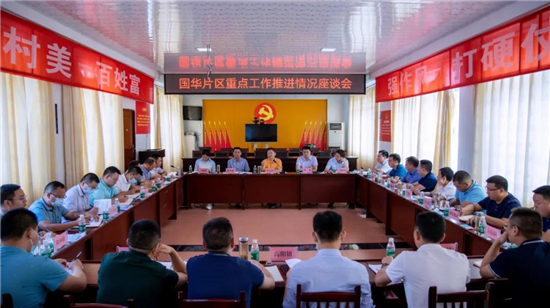 调研结束后,唐文辉在国华镇主持召开国华片区重点工作推进情况座谈会,听取了相关乡镇全年目标完成情况及下一步工作打算、两项改革“后半篇”文章、环保督察迎检、基层治理等重点工作汇报。