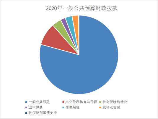 2020年一般公共预算财政拨款支出848.83万元,主要用于以下方面:主要用于以下方面:一般公共服务(类)支出672.69万元,占79%;文化旅游体育与传媒(类)支出78.26万元,占9%;社会保障和就业(类)支出32.39万元,占3.9%;卫生健康支出17.2万元,占2%;住房保障支出24.29万元,占3%。农林水支出(类)扶贫(款)其他扶贫支出(项)支出22万元,占3%。抗疫特别国债安排的支出(类)抗疫相关支出(款)其他抗疫相关支出(项)支出2万元,占0.2%。