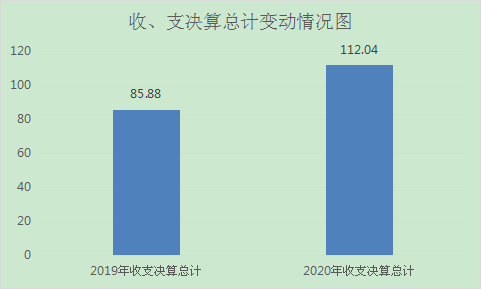 2020年度收入支出决算总计112.04万元。与2019年85.88万元相比,增加26.16万元,增长30.46%。主要变动原因是单位合并导致人员经费和业务经费增加。