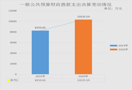2020年一般公共预算财政拨款支出10325.59万元,占本年支出合计的98.78%。与2019年相比,一般公共预算财政拨款增加2074.94万元,增长25.15%。主要变动原因是增加了财政专项扶贫资金。