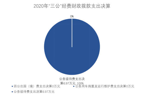 2020年“三公”经费财政拨款支出决算中,因公出国(境)费支出决算0万元;公务用车购置及运行维护费支出决算0万元;公务接待费支出决算6.97万元,占96.8%。具体情况如下:
