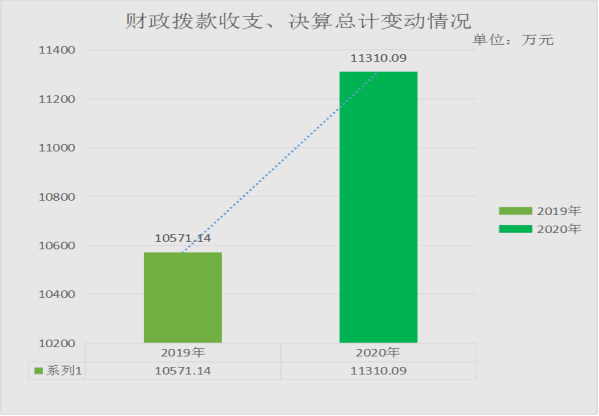 2020年度收、支总计11310.09万元。与2019年相比,收、支总计各增加738.95万元,增长6.99%。主要变动原因是2020年政策性调资、扶贫专项资金增加。