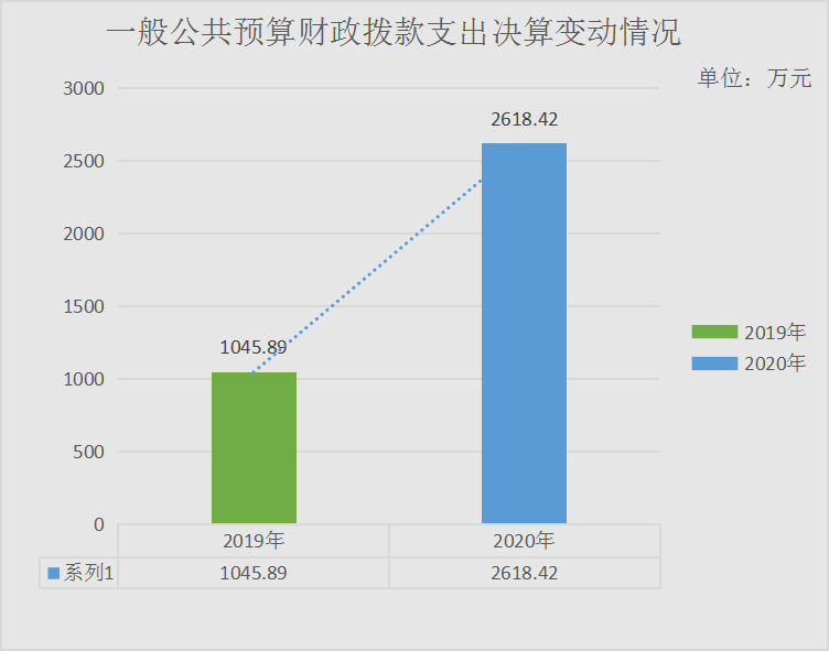 2020年一般公共预算财政拨款支出2618.42万元,占本年支出合计的99.92%。与2019年相比,一般公共预算财政拨款增加1572.53万元,增长150.35%。主要变动原因是专项资金增加。