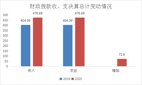 2020年度收、支总计476.69万元。与2019年相比,收、支总计各增加72.6万元,增长17.97%。主要变动原因是人员经费和项目经费增加。