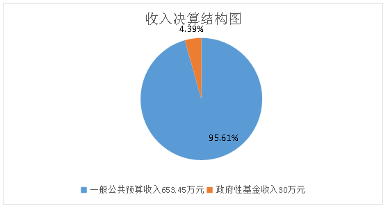 2020年本年收入合计683.45万元,其中:一般公共预算财政拨款收入653.45万元,占95.61%;政府性基金预算财政拨款收入30万元,占4.39%;上级补助收入0万元,占0%;事业收入0万元,占0%;经营收入0万元,占0%;附属单位上缴收入0万元,占0%;其他收入0万元,占0%。