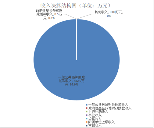 2020年本年收入合计483.4万元,其中:一般公共预算财政拨款收入482.9万元,占99.9%;政府性基金预算财政拨款收入0.5万元,占0.1%;上级补助收入0万元,占0%;事业收入0万元,占0%;经营收入0万元,占0%;附属单位上缴收入0万元,占0%;其他收入0万元,占0%。