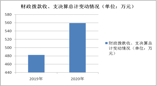 2020年财政拨款收、支总计559.55万元。与2019年482.39万元相比,财政拨款收、支总计各增加77.16万元,增长16%。主要变动原因是区划调整,人员增加。