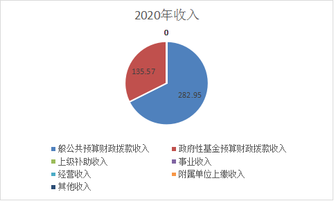2020年本年收入合计418.52万元,其中:一般公共预算财政拨款收入282.95万元,占67.6%;政府性基金预算财政拨款收入135.57万元,占32.4%;上级补助收入0万元,占0%;事业收入0万元,占0%;经营收入0万元,占0%;附属单位上缴收入0万元,占0%;其他收入0万元,占0%。
